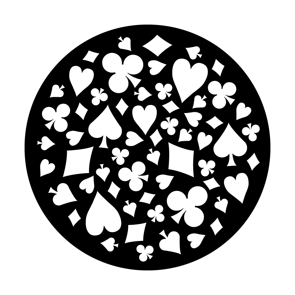 Hearts, spades, clubs, and diamonds combine for our Feelin' Lucky? Gobo pattern! Great for casino nights and themed events.